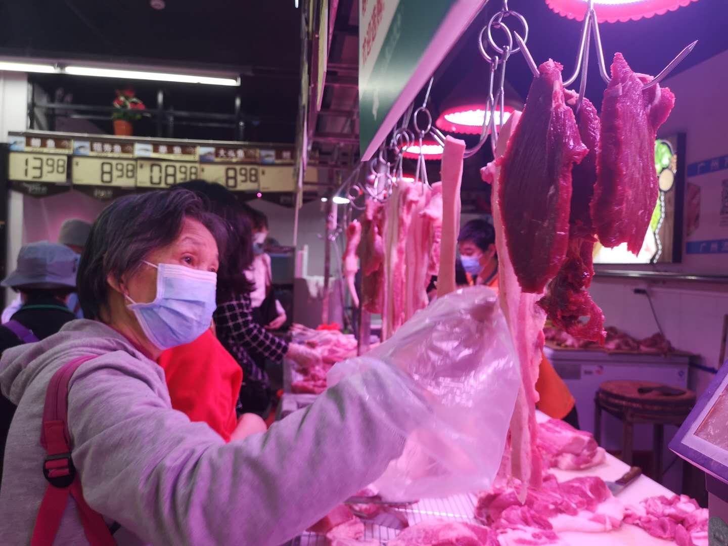 “从4月3日开始降价,排骨和瘦肉最受街坊欢迎!鲜猪肉销售量增加了30%,原来每天卖1头到1.5头的猪肉量,现在可以卖到2头!”该超市的王店长表示,店内鲜猪肉供应充足,市民傍晚6、7点过来还可以买到。另外,该超市根据前一天的购买情况来调整进货量,价格也会根据采购价和菜篮子价格进行浮动,至少比市场均价低10%。