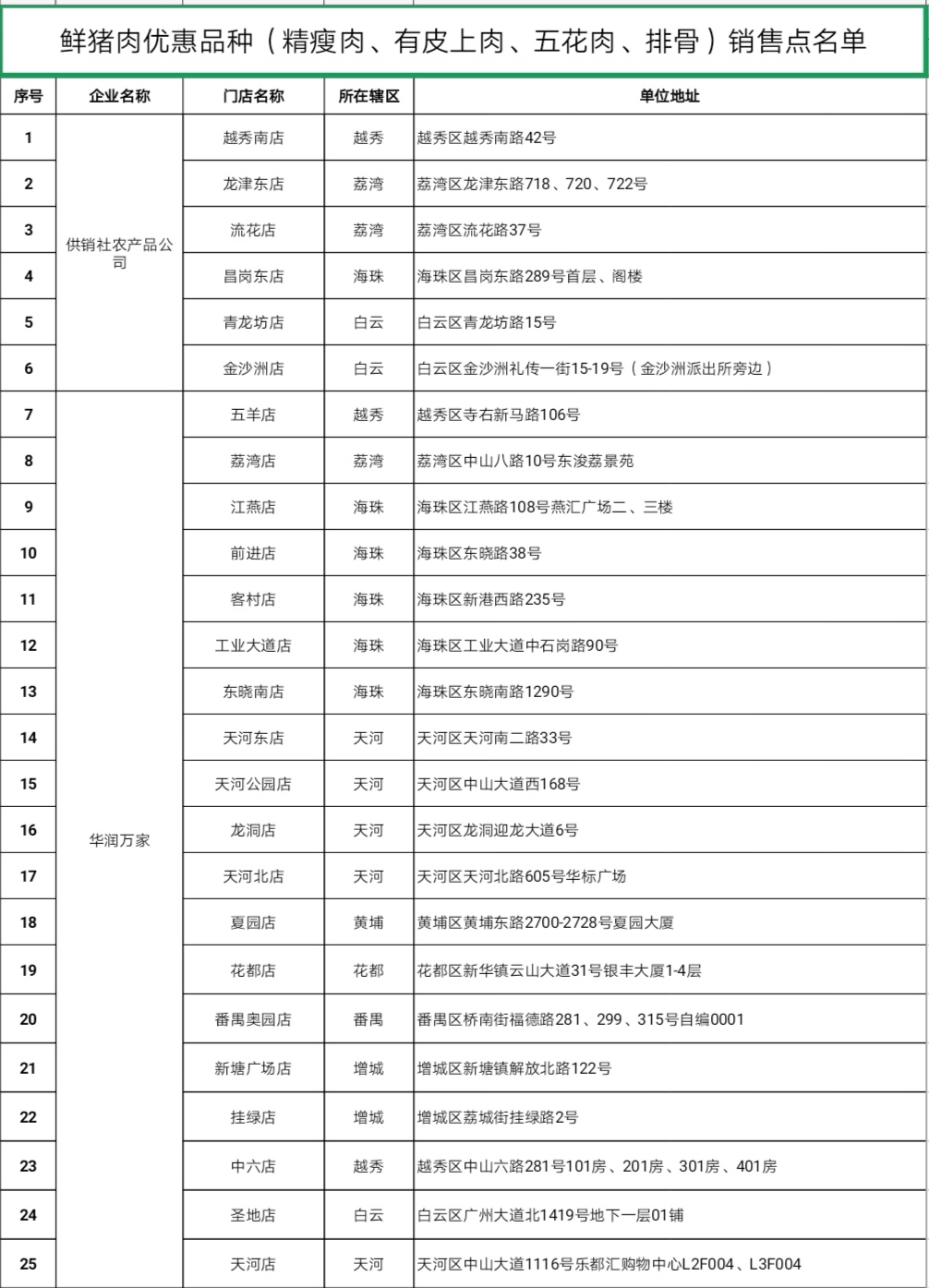 附:鲜猪肉优惠品种(精瘦肉、有皮上肉、五花肉、排骨)销售点名单