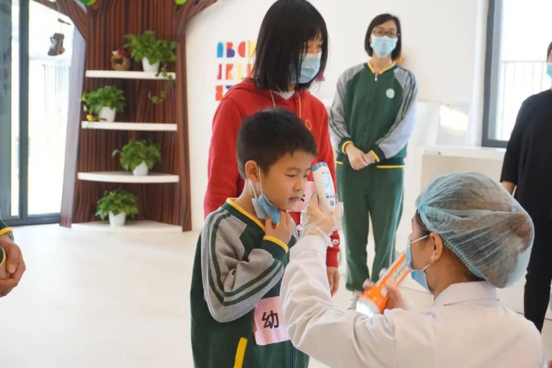 在放学离园环节中,老师还会对全体“幼儿”进行再次体温测量,无异常的“幼儿”由家长接回,发现体温异常则启动应急预案,按照在园期间发热幼儿的处理流程进行处理。