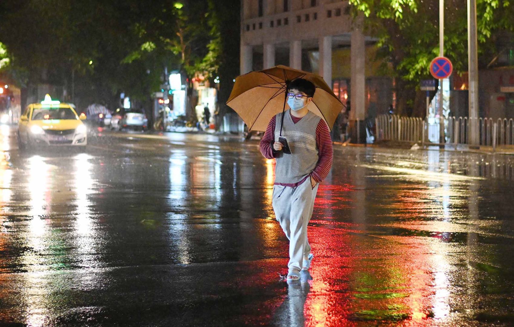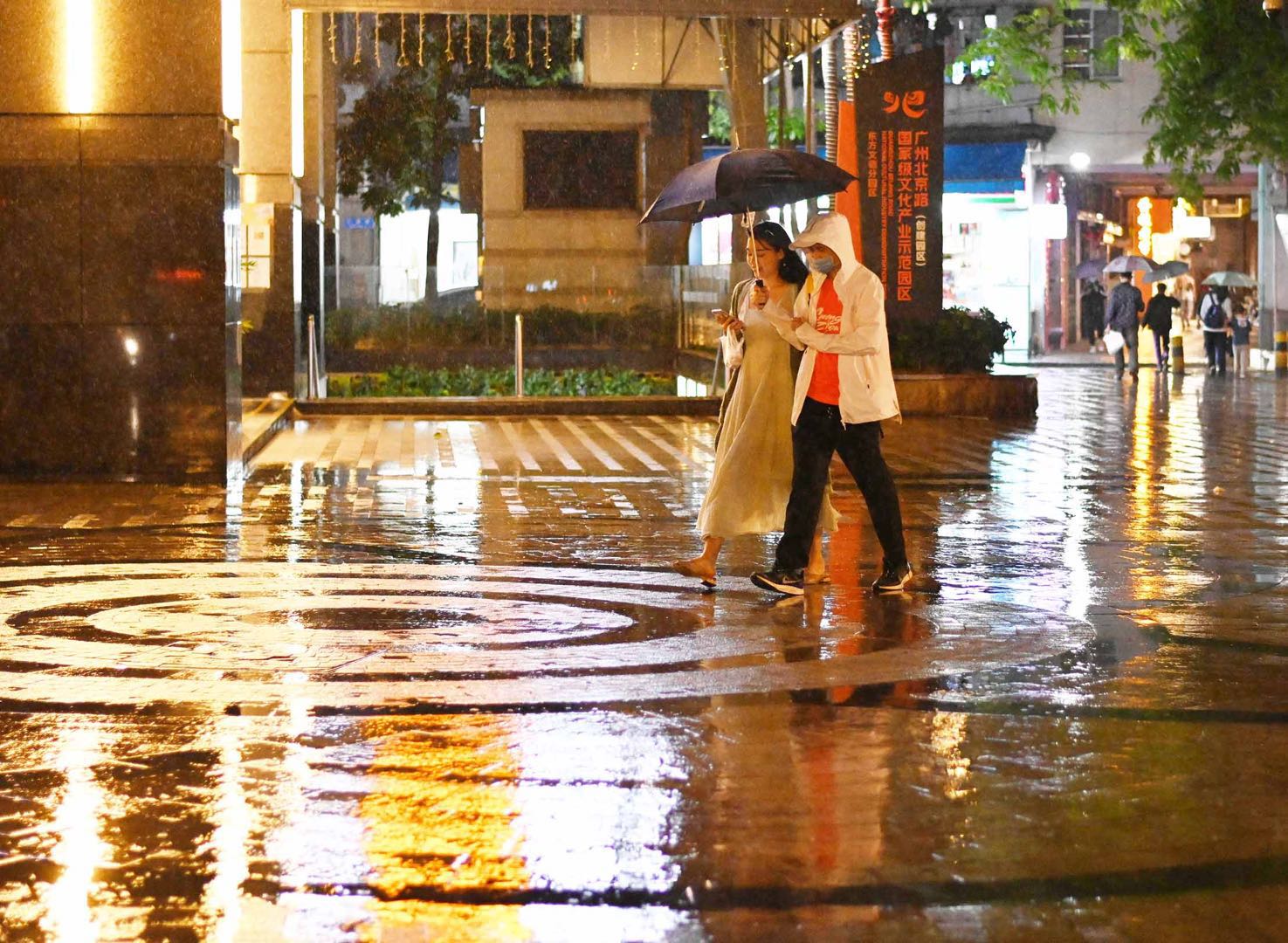 2020年4月11日,天气预报广州城区白天有大雨,但直到晚上近9点雨水才徐徐降下。