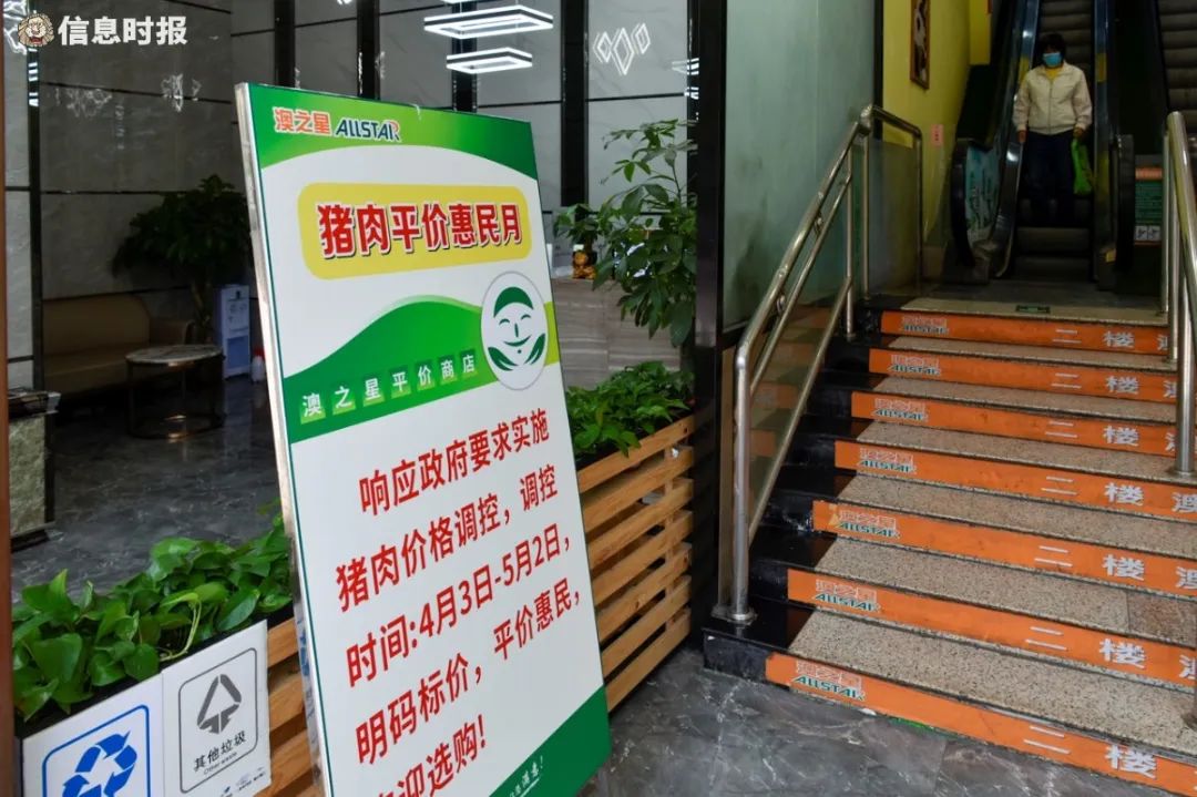 澳之星超市龙津店的猪肉品类价格降幅均在10%以上,其中排骨、上肉降价最多,店长王先生表示,优惠活动进行了一周,销售量明显增长了30%以上,每天新鲜肉销量约为2头生猪。