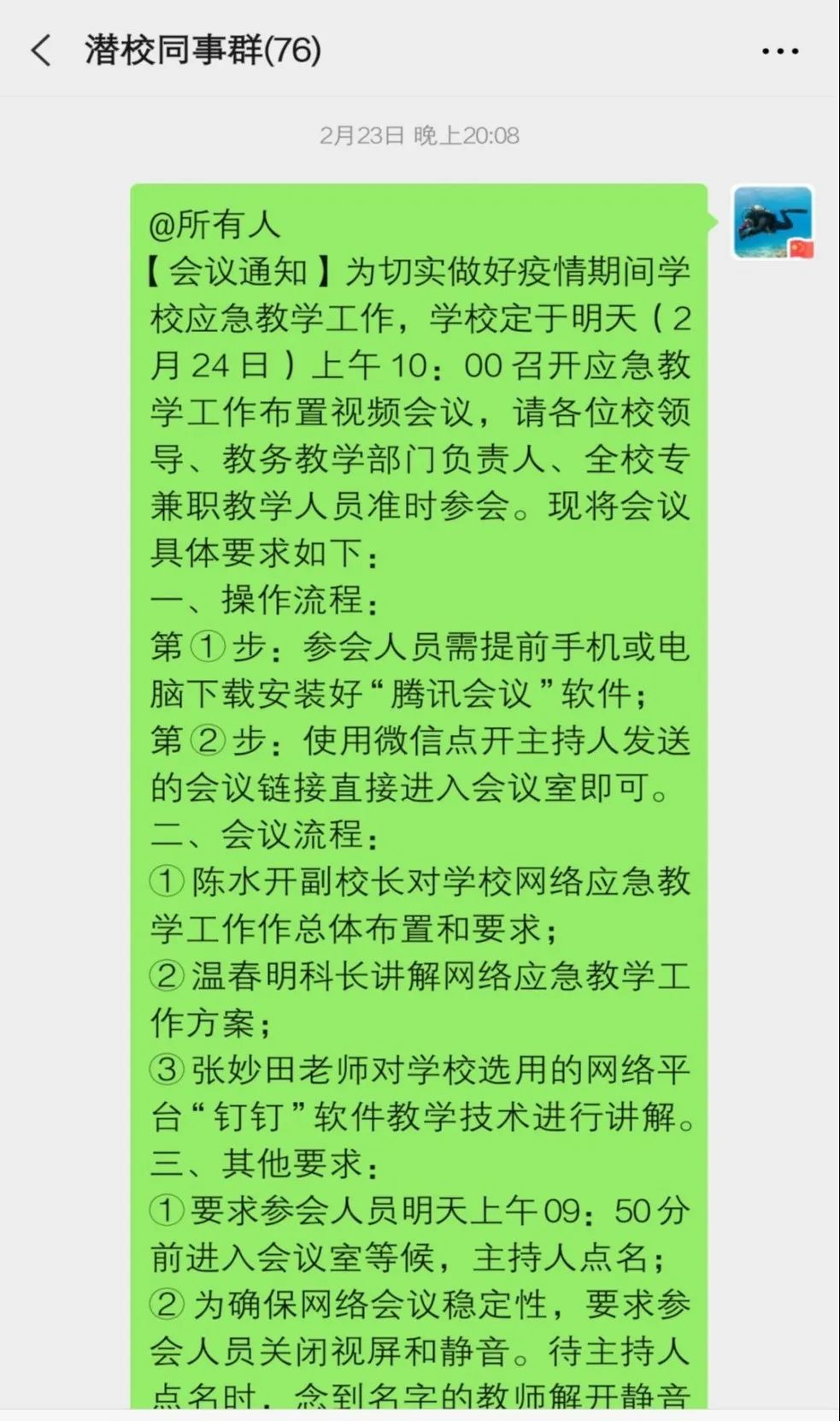 “为了保证学生正常学习进度,2月24日学校以视频会议形式召开防控疫情暨复工复学部署会议,研究复工复学的实际举措。从3月9日开始至今,我们已经实施线上教学一个月了。”校办公室主任张剑雄老师说道:“我们学校的刘文清老师是湖北荆州人,寒假期间回老家过年了,前期因为疫情所困没有办法回广州,但是为了不耽误教学任务,他克服老家条件简陋的困难,利用手机加黑板手绘图方式,坚持给学生上网课。”