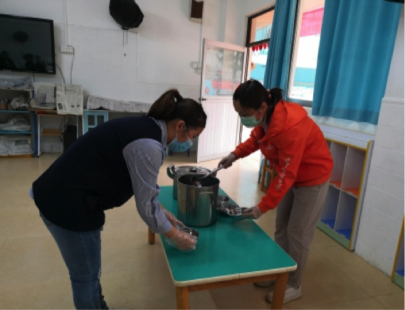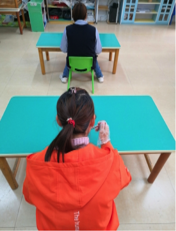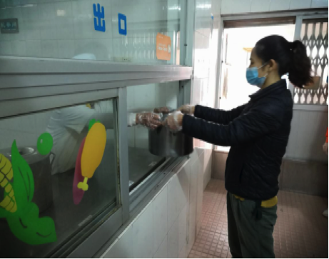 为了让演练活动流程更加清晰,做到演练步骤精准到人、物、时、事,做到组织有序、协同配合,佳成之星幼儿园园长介绍:“就餐过程需摘除口罩,为了降低风险,教职工进门、员工进厨房拿餐都需测温洗手。就餐时,各班级要进行分餐,小朋友和教职工都要隔开一定距离进餐,并按要求做好餐前后消毒工作。若发现异常,班级老师立即上报保健医生带去隔离室,由保健医生再次测温进行调查询问情况后,再同步口头上报属地街道卫生科、街道教育科、区疾控和区教育局。”