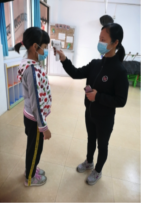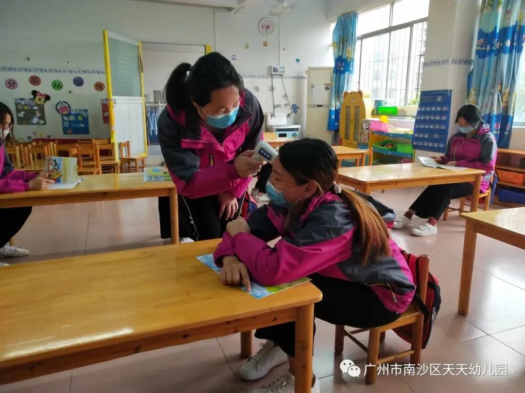 测温老师介绍:“每次上完课后、户外活动后、进餐后、午睡前、午睡后等都会对幼儿测量体温。保健老师一旦发现异常情况,则马上把情况报告给园长,由石园长启动紧急预案,立刻打120通知相关医院派车接诊,并上报给社区和疾控预防中心。”