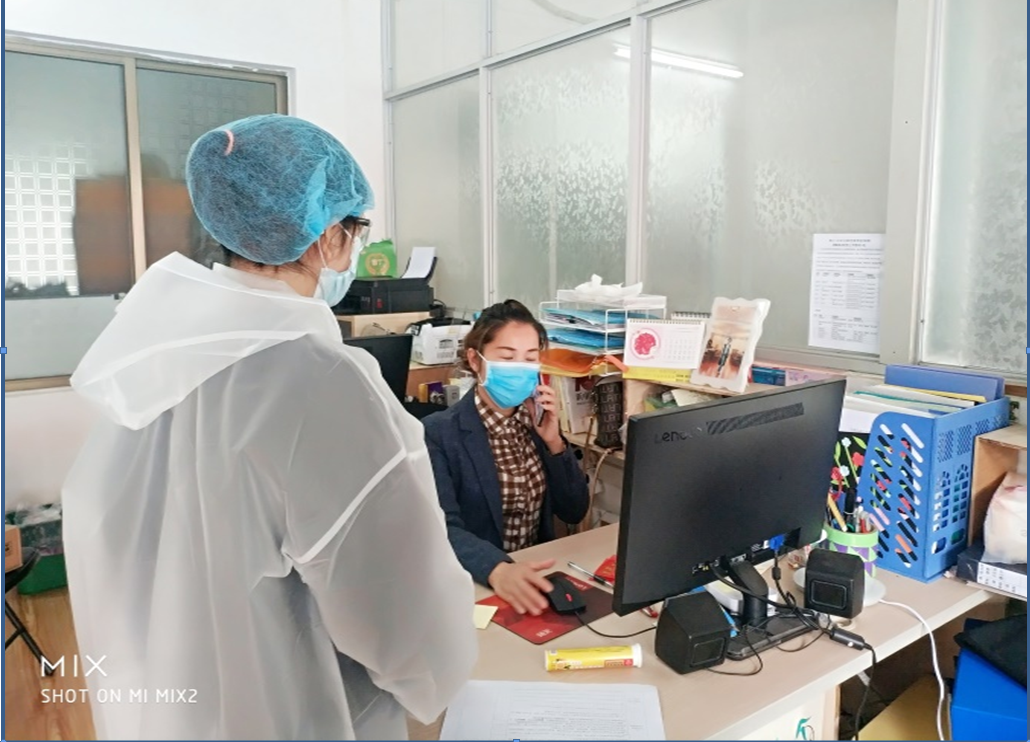 厨房人员出现发热症状情景演练:厨房主管温伟贤马上通知保健医生测量体温。