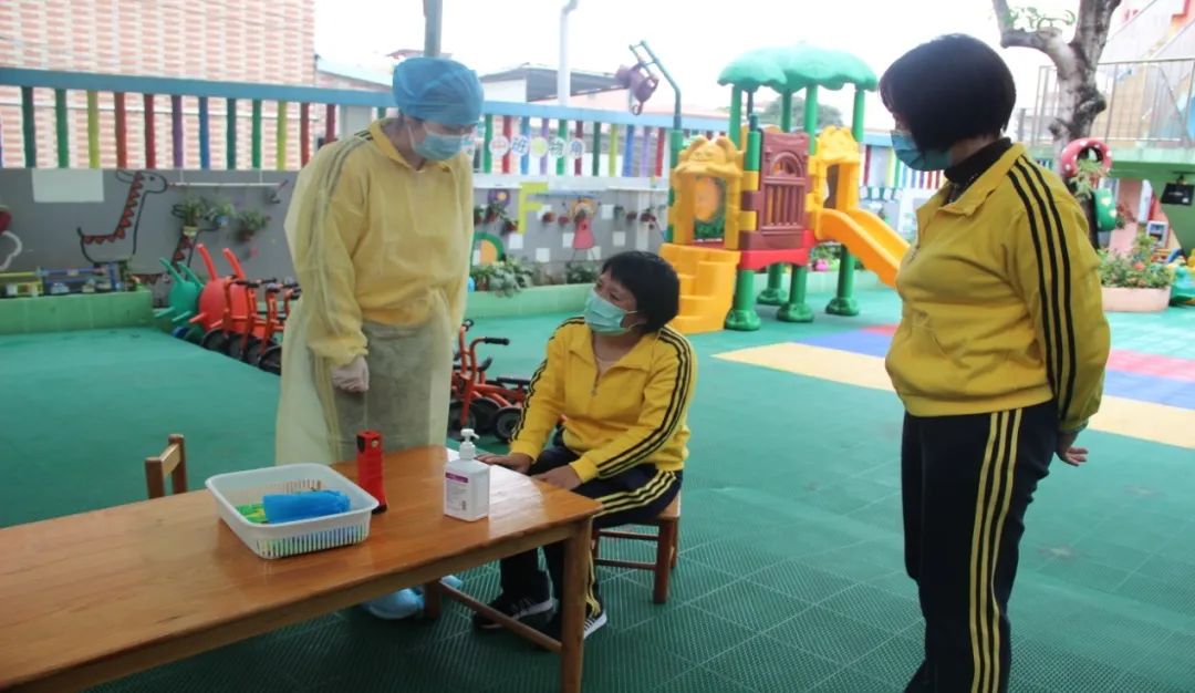 在制定的《三区幼儿园新冠病毒感染应急处置预案》中,此次演练在幼儿园门口设置了秩序引导点、体温检测点、防疫消毒点,并在园所设置了应急隔离点,还将园内教职工分工为医护组、疏散组、安保组、信息组、后勤组等五组成员,有效提高园区预防疫情的能力,维护幼儿园正常的教学秩序,保障全园幼儿和教师的身体健康与生命安全。