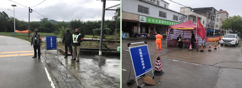 面对当前依然严峻的疫情防控工作形势,鳌头镇各个村居科学设置交通安全、疫情防控、森林防火和清明拜祭四合一联合执勤点。安全员、劝导员在参与防疫工作的同时,不忘本职工作,利用排查登记空隙,对来往的行人和车辆进行安全检查,对五类机动车违法行为进行纠正劝导。