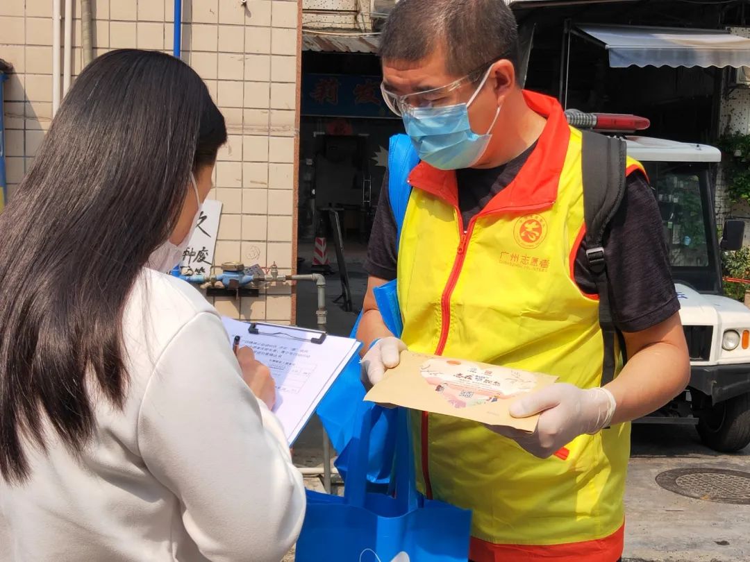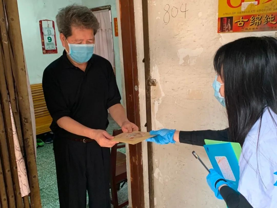石牌街社工站链接广州志愿者协会筹措社会资源,联动社区党员志愿者、社区志愿者为12名困境长者、8名困境青少年派送共200个口罩、40瓶洗手液,向他们传递社区的关怀、关注和温暖问候,并普及科学预防新冠肺炎知识。