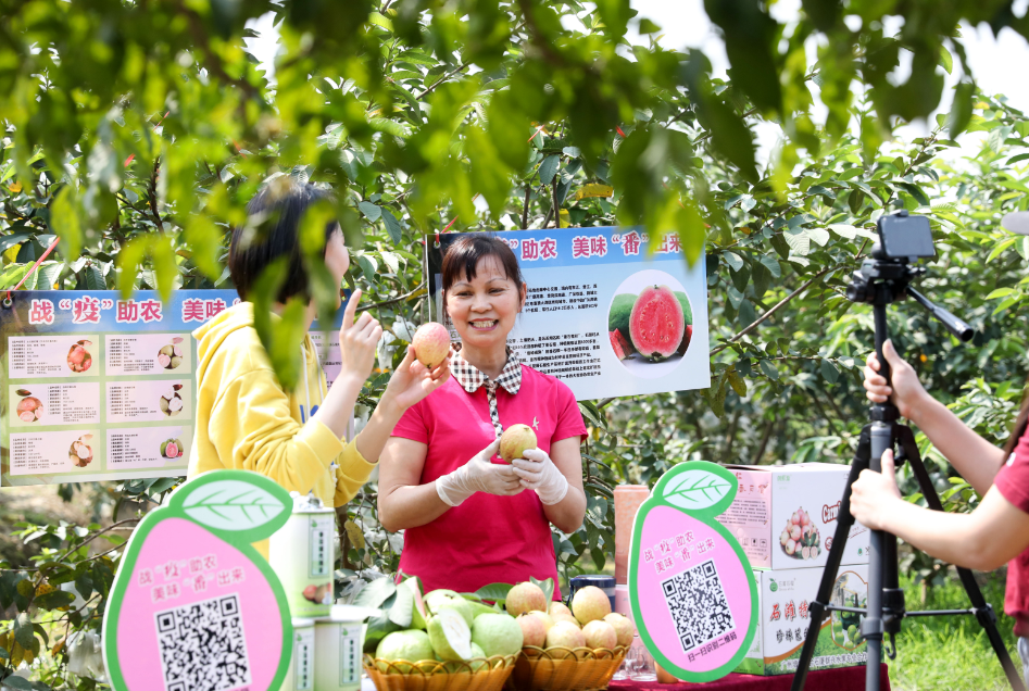 从上世纪80年代开始种植番石榴,目前全村80%农田都种植了番石榴,种植规模达到6000多亩,亩产可达1万斤以上。经过多年的技术改良,“错峰成熟”的番石榴一年四季都有收成,胭脂红、白香果、四季仔、珍珠芭乐等品种有口皆碑,番石榴种植也成为村中最重要的经济产业。但今年受疫情影响,番石榴线下销售受到了一定的影响。
