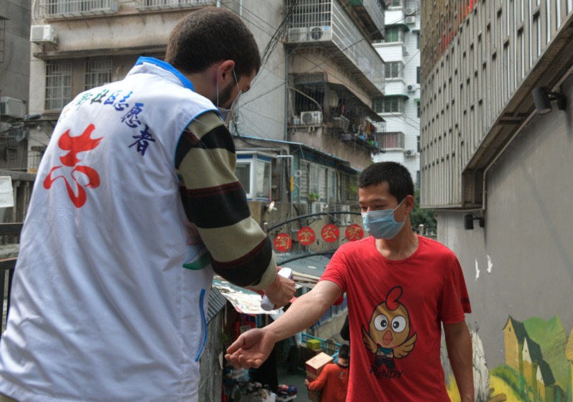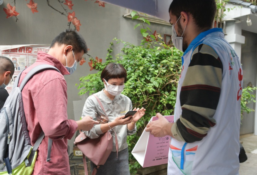 4月17日下午,20岁的大学生吴曦如常到广州越秀区淘金农贸市场外的门岗参加志愿服务,为过往人员测量体温,以及检查穗康码。