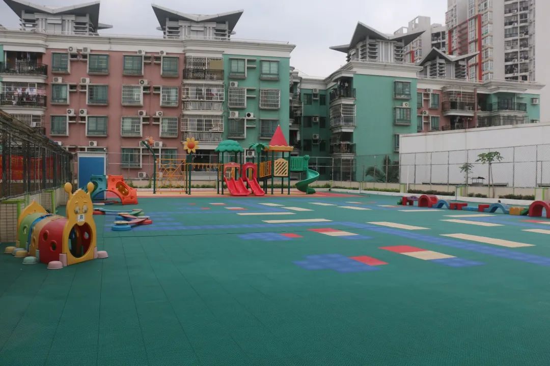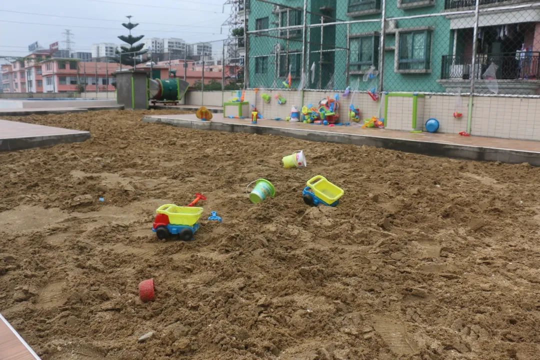 园区户外有大型器械区、大操场、30米直跑道、玩水池、玩沙池和种植区;园内配备视频监控系统、广播系统和网络家园联系平台等保障设施。