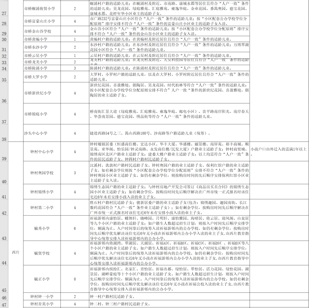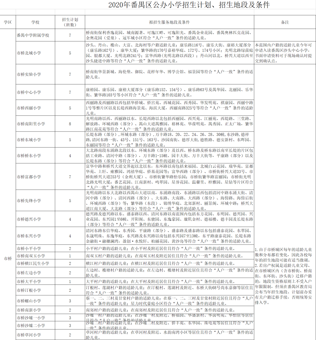 此外,由于市桥城区每年的适龄儿童数和分布都有变化,因此各校每年的招生地段可能有适当微调。并且,若房产权属是适龄儿童父母、在市桥城区内(含市桥街、桥南街、东环街、沙头街)迁移户籍的,地段生资格原则上不受入户年限限制,但须在番禺区教育局公布当年招生地段、计划前办妥有关户籍迁移手续,否则统筹安排入学。