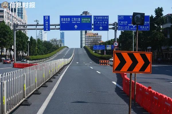 03 新港路东往南方向行驶车辆可行驶至广州大道原广州大桥收费站处掉头绕行,也可以行驶至新港西路下渡路口处掉头绕行;