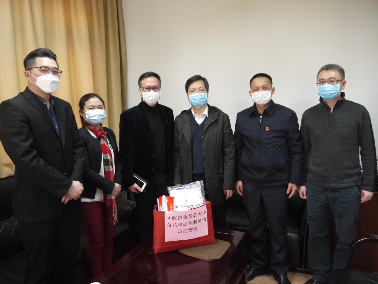 2月19日,区政协委员郭大坤到龙津街捐赠400只口罩