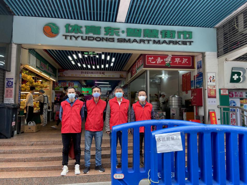 叶穗强(左一)冲锋在社区网格一线,为居民筑牢社区健康防线。