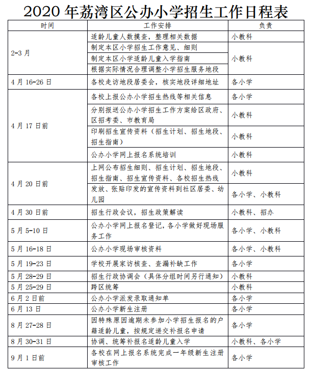 (二) 居住在荔湾区的非穗籍符合 2020 年广州市荔湾区义务教育阶段政策性照顾学生条件的适龄儿童于5月18日到实际居住地对应地段学校提交材料报名登记并审核。