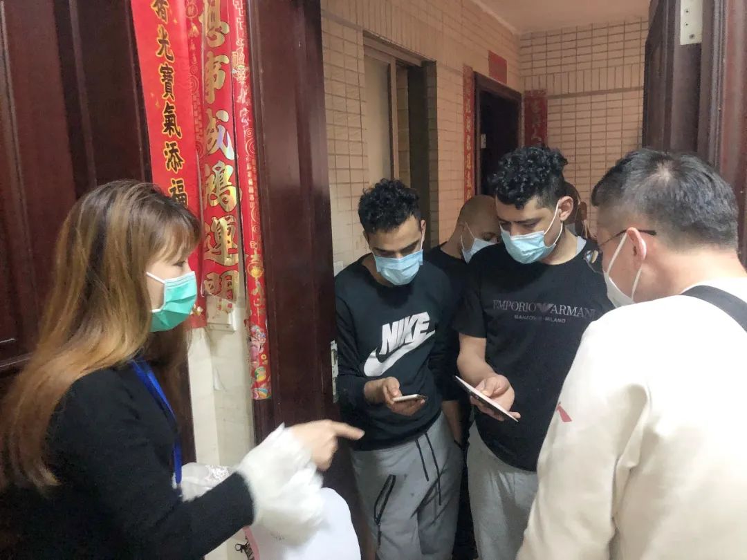 “您好,我们是由社区医生、社区民警、社区工作人员组成的‘三人小组’,先给您测量体温,接着扫这个二维码……”廖环告诉记者,他的主要工作是跟随“三人小组”上门,为猎德社区的外籍人士提供语言服务。同时,协助医生上门给外籍人士检测体温并进行登记,协助医生为外籍人士解除医学观察,协助社区管理员讲解居家隔离防范的措施、隔离注意事项、中国的法律政策等,协助隔离人员完成信息上报等操作。
