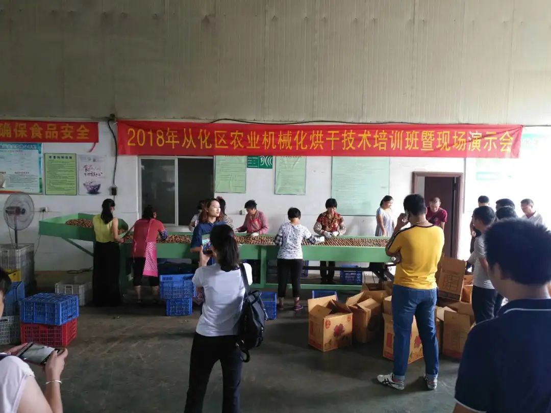 ▲2018年从化区农业机械化烘干技术培训班暨现场演示会在佳荔干鲜果食品有限公司进行。