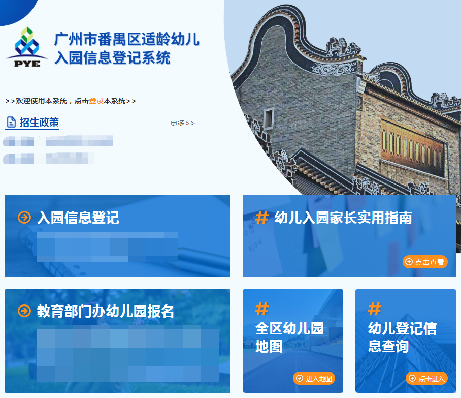 ◆电脑PC端登陆“广州市番禺区适龄幼儿入园信息登记系统”(http://qsy.pyedu.cn)
