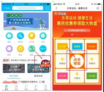 随着国内新冠肺炎疫情形势逐渐明朗,在“外防输入,内防反弹”的原则指导下,广州市各大体育场馆陆续按下复工复业“启动键”。作为广州市全民健身公共服务平台的“群体通”已恢复线上预订场地服务,即日起还推出“运动抗疫·健康广州”活动,通过使用体彩公益金,向市民广泛派发体育消费券,既助力场馆复产开放,促进体育消费,又引导市民积极参与健身运动,增强身体免疫力。