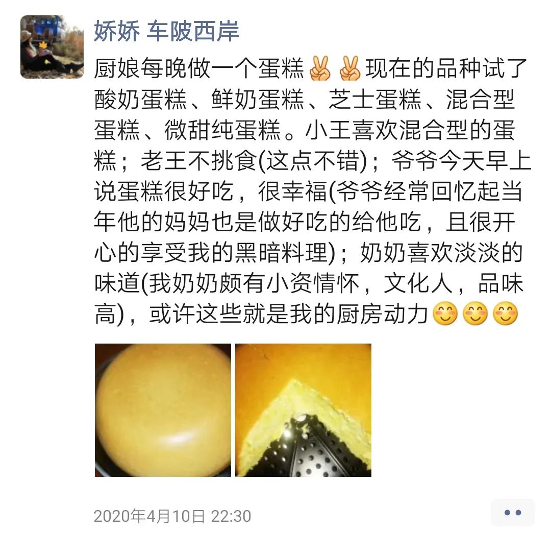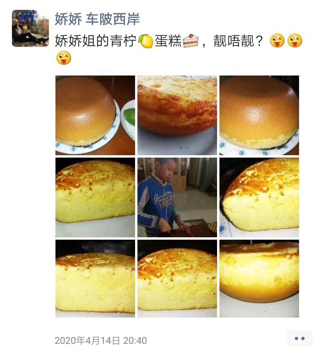 “娇娇姐的青柠蛋糕,靓不靓?”“厨娘出品,都是健康的瘦身食品。”喜欢娇娇的这种自信,也喜欢她做美食的随心所欲。娇娇做蛋糕,喜欢放酸奶和柠檬奶,酸汁能对蛋糕起定型作用,她觉得这样做出来的蛋糕特别靓。