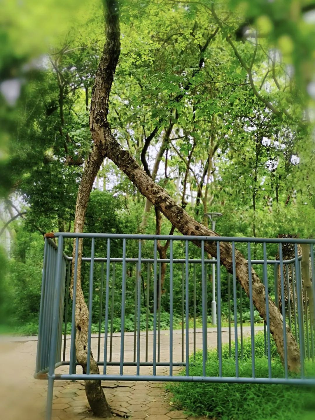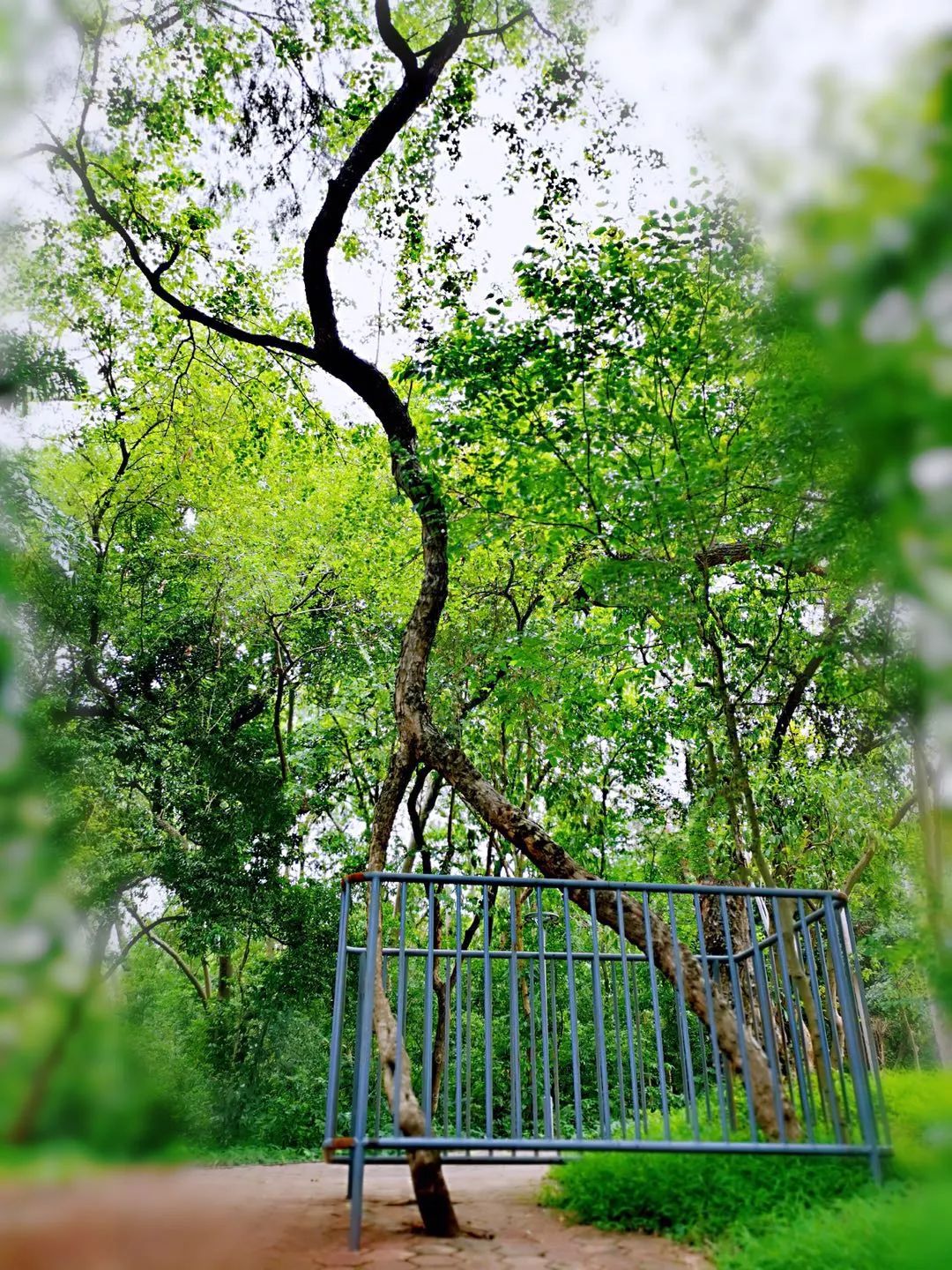 今年春天,当我去天河公园再看见这棵连理树时,那种人树尽欢的感觉,更是非常的愉悦——因为,这棵连理树杆的四周,围起了铁栅栏,被保护起来啦。整个人都开心极了!