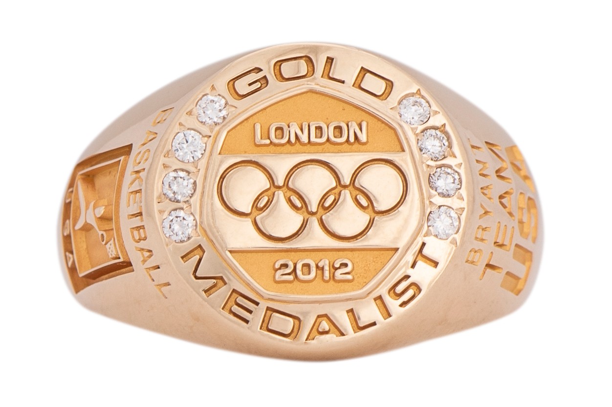 目前这批物品已经开始的线上拍卖,预计在当地时间5月16日结束。拍卖物品多达86件。值得一提的是伦敦奥运会的冠军戒指,戒指有14克拉,镶嵌8颗钻石,上面刻有科比的名字。那一届奥运会,科比率领的梦之队8胜0负,以不败战绩夺冠。