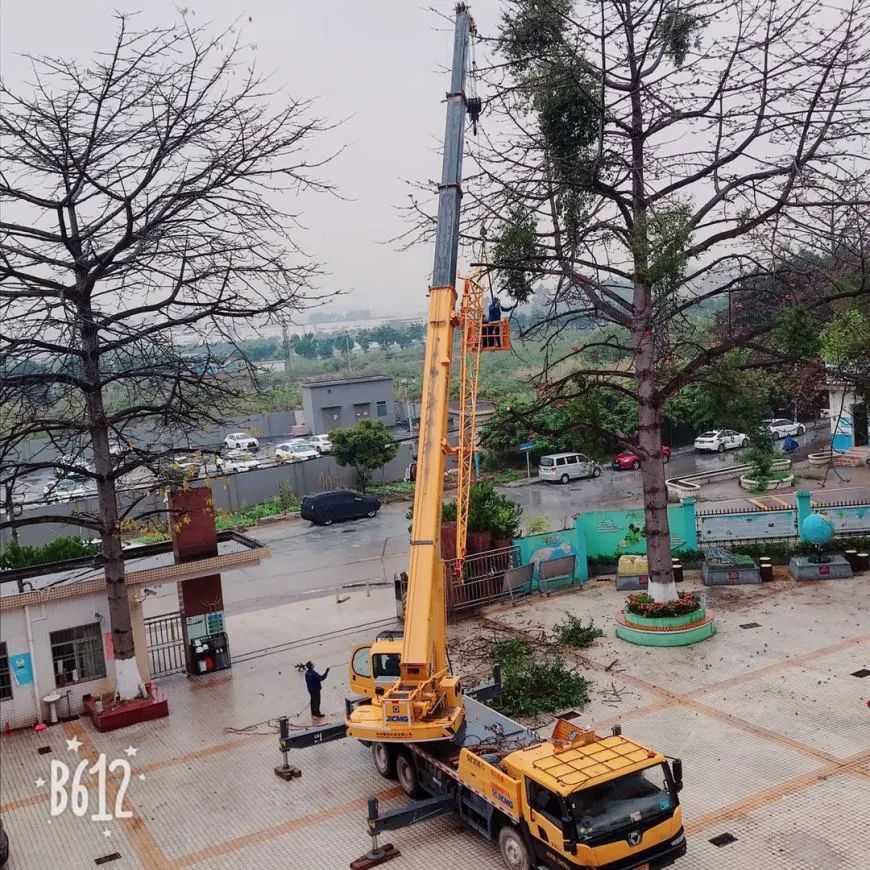 此外,学校请专业绿化公司对校门绿化带进行升级改造,对校门口两棵红棉树进行寄生枝清理,消除安全隐患。