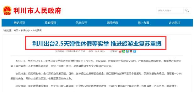 25日,湖北利川市人民政府网站发布消息:《利川出台2.5天弹性休假等实举 推进旅游业复苏重振》