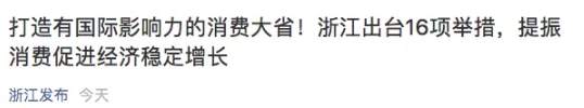 据浙江省人民政府新闻办公室官微3月24日发布的消息,浙江印发《浙江省人民政府办公厅关于提振消费促进经济稳定增长的实施意见》。