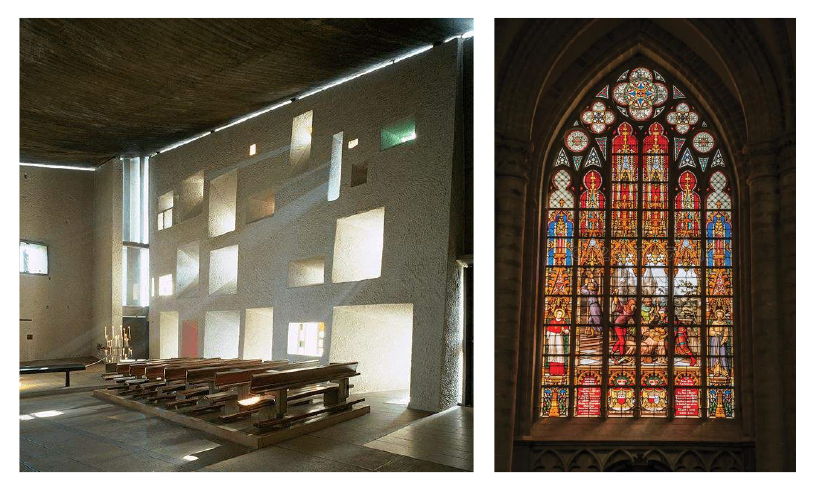 图7 左:朗香教堂內部 右:里昂大教堂內部
