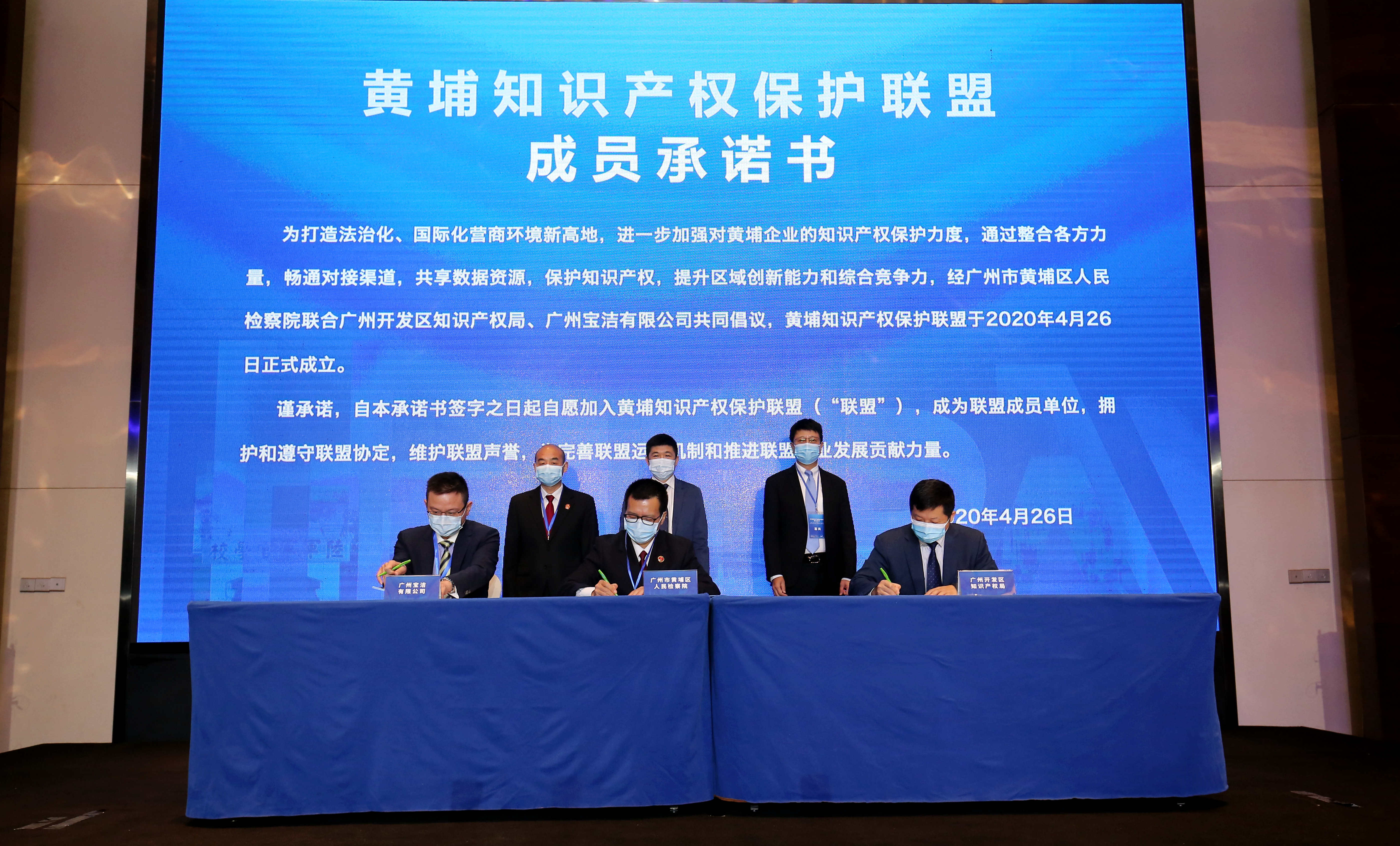2020年4月26日上午,黄埔知识产权保护联盟在广州市黄埔区正式成立。联盟由广东省广州市黄埔区人民检察院联合广州开发区知识产权局、广州宝洁有限公司倡议发起,黄埔区内司法、行政执法机关、区内企业及国内科研机构自愿加入,旨在更系统、专业、精准地对知识产权进行保护,构建知识产权大保护工作格局,打造具有国际影响力的知识产权保护中心。