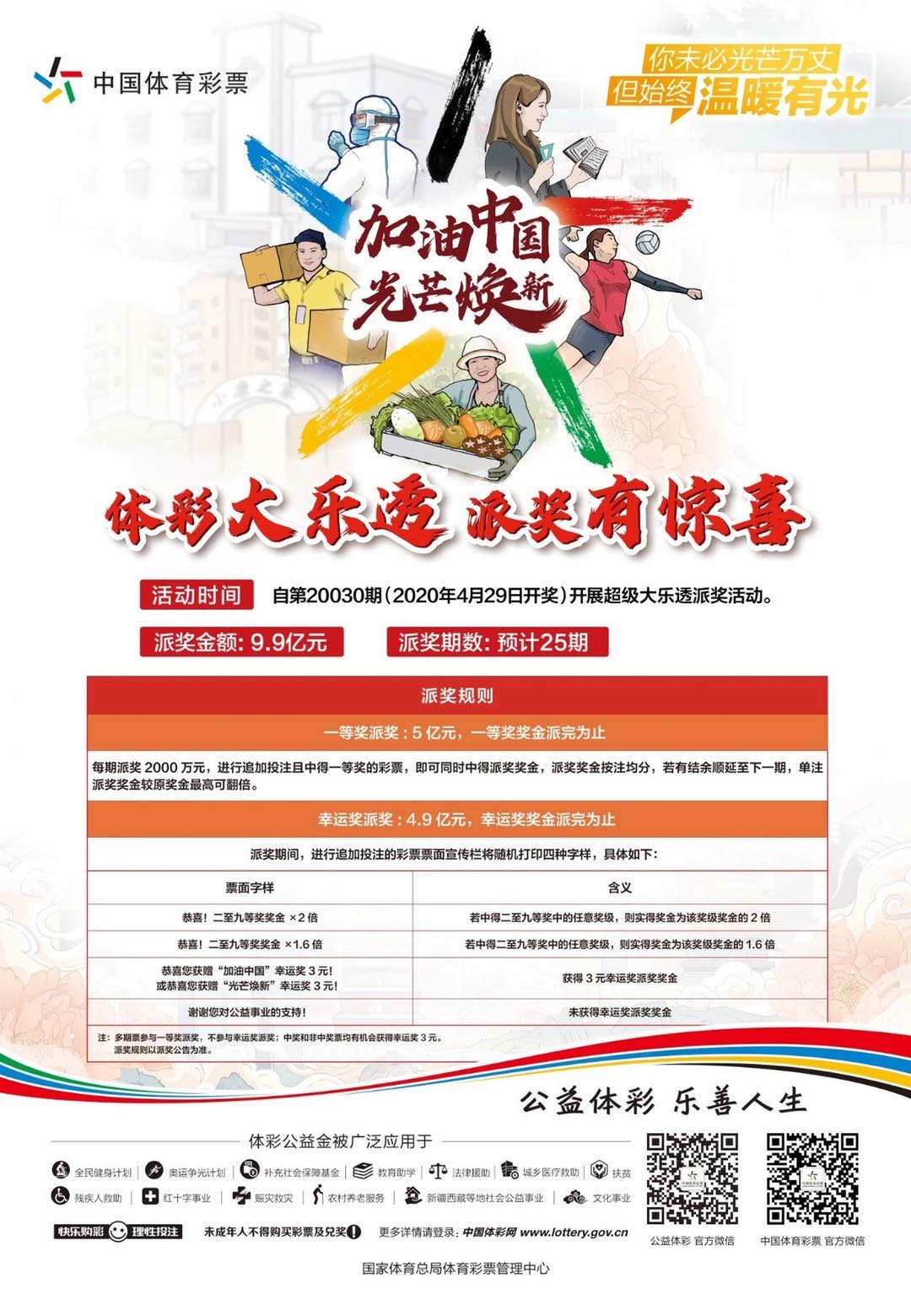 体彩大乐透9.9亿大派奖活动将启动,首个奖期今晚开售,将于4月29日首次派奖!目前,广州已有2012家体彩实体店恢复销售,广大市民可亲临就近的体彩实体店了解活动详情。