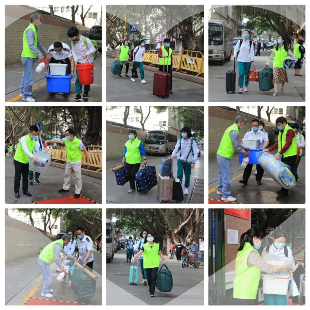 疏导车辆、接送行李、派发消毒物品、检测体温,这些刚刚当完“主播”的校园“网红”们,再一次用忙碌的身影、汗湿的衣襟,诠释培英教育“因爱坚守,为爱担当”的信念和使命,也让家长和孩子们吃下定心丸。