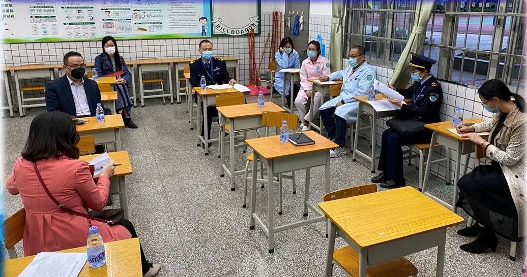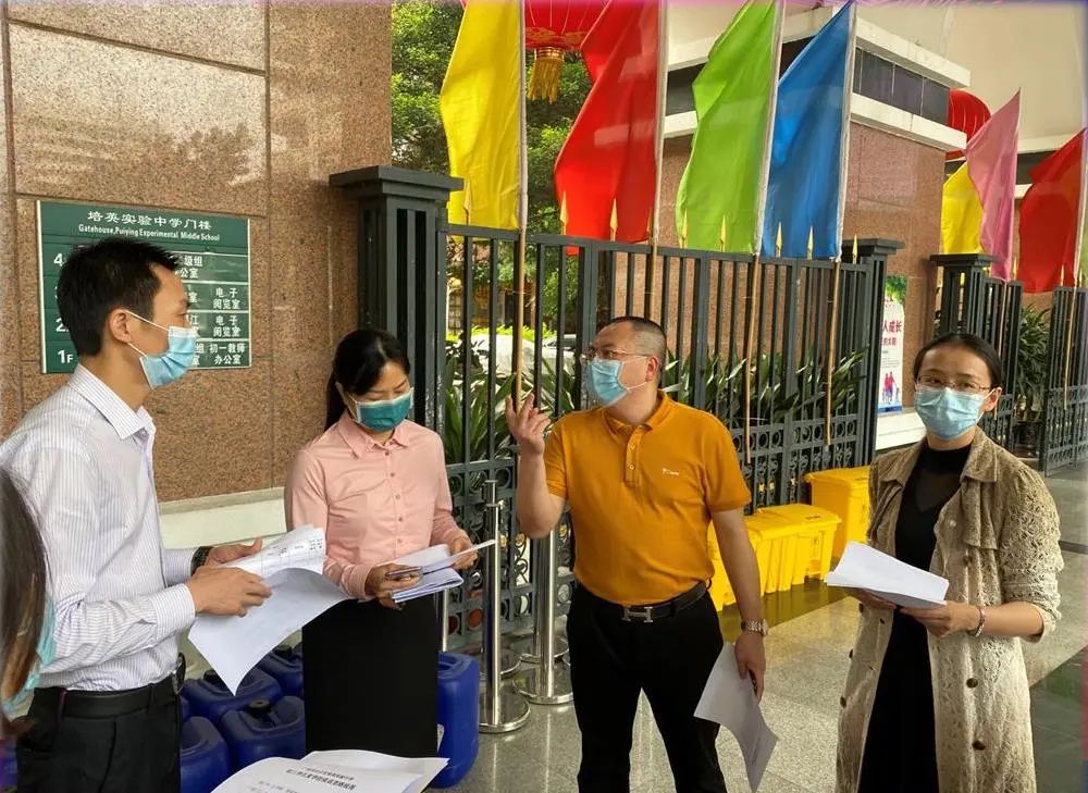 在前期多次督导助力学校顺利返校后,京溪街主要负责人与市、区相关领导今天也到校为师生助力。京溪街党工委书记杨莉带领班子成员以及京溪街社区卫生服务中心组成新冠肺炎疫情防控教育联合督查组,第一时间为该校师生送去关爱。