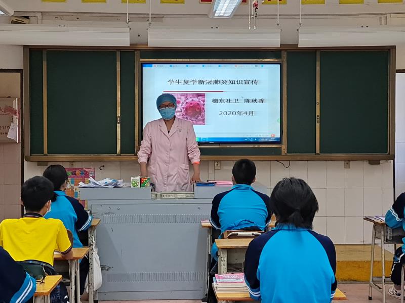 广州中学初三7班的复学第一课也邀请了广东援鄂医疗队队员,中山三院产科护士长孙珂为同学们讲述医护人员驰援武汉的故事,并为同学们进行防疫培训。