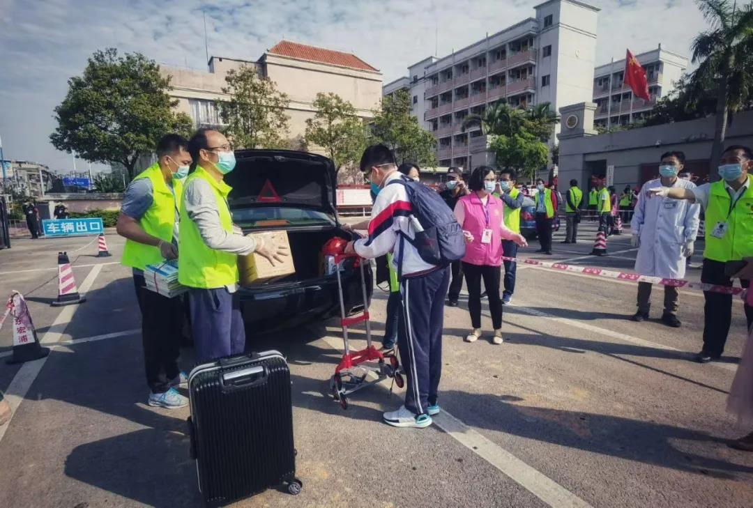 4月27日,荔湾区金道中学初三师生返校日子如期而至。学校为每位返校的师生贴心地准备了一个爱心福袋,里面装有免洗洗手液等防疫用品并配有《金道中学学生返校防疫要点流程图》。金道中学特地请到“最美逆行者”中山大学附属第一医院援鄂医疗队队员、护理小组组长曾庆兵在阶梯教室为全体师生作报告,现场听报告的只有一个班级,其他班级则在教室通过电教设备听报告。作为一名护士,曾庆兵说,除了护理工作,还要为病人洗头换药、进行心理疏导,“穿防护服非常闷热,没有空调,就用最原始的冰块降温法”。面向的是学生,曾庆兵嘱咐同学们要对抗疫胜利有信心,只要按照要求守住自己的口鼻、正确地勤洗手,就不会有问题。