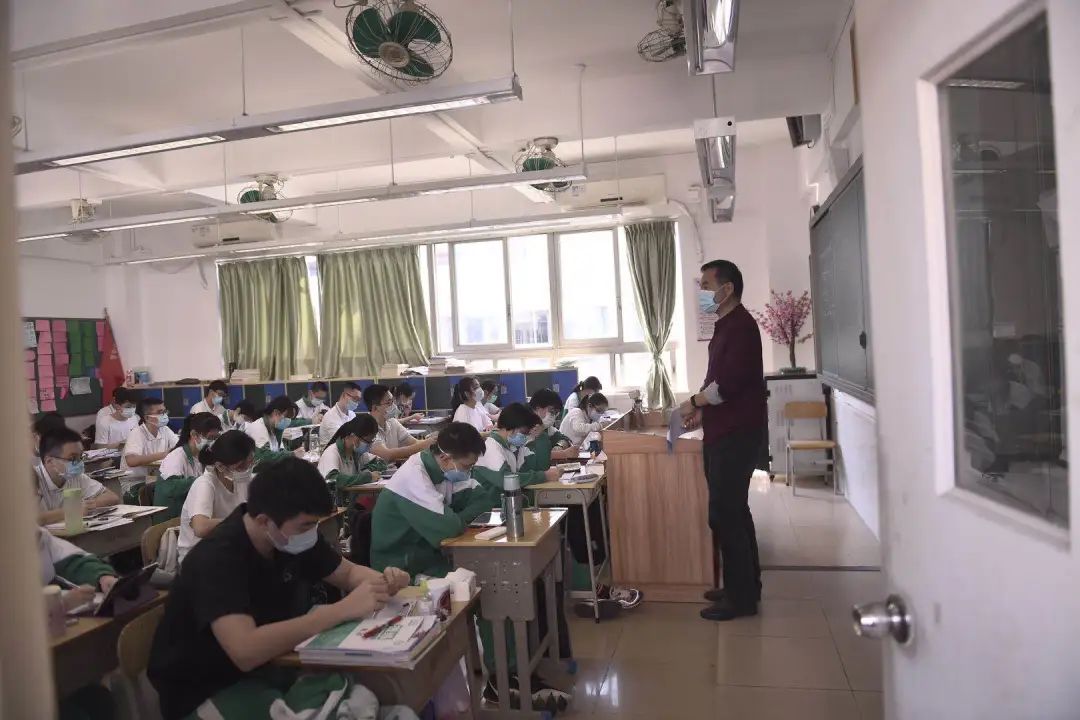 广州中学校长吴颖民介绍,广州中学初三一共有22个班。每个班人数40多个人。返校复课后,一个班随机拆分为2个班。这节课老师在A班上课,B班的同学则观看视频直播。下节课老师在B班上课,A班同学看视频直播。一节课的课程时长没有变化,依然是40分钟一节课。