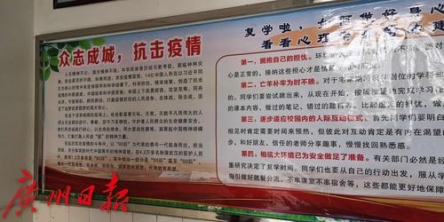 为了让学生顺利返校,前期,学校制定了返校工作方案,进行了多次应急演练。除此,还通过穗康教职工健康卡、穗康学生健康卡进行全校师生员工健康管理,逐人建立健康档案,掌握所有人员每日健康状况和返校前14天的动向。“第一批返校的师生和员工共1000多人核酸检测全部合格。” 骆宝祥说。