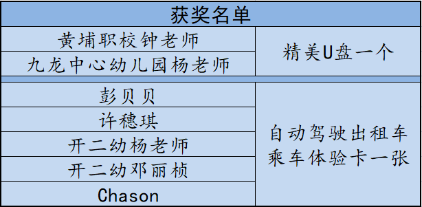 1、将在分享用户中随机抽取若干名,赠送由自动驾驶出行企业「文远知行」提供的面值50自动驾驶出租车乘车体验卡一张(走心的分享获奖几率更高哦~)。