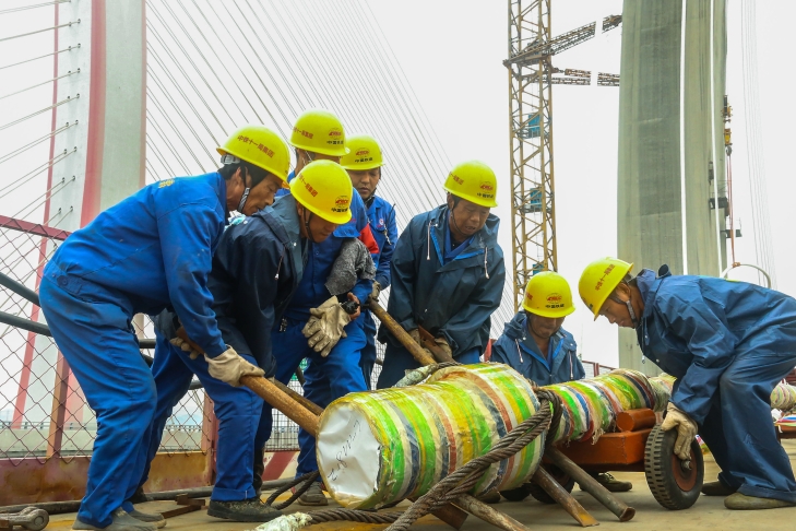 24小时不间断作业,人休机不停,每天将近130余人进场作业。这是3月初复工以来,中铁十一局南沙港铁路项目跨西江斜拉桥施工现场的真实写照。五一将至,建设者抓住当前晴好天气,加班加点拼抢进度。施工现场桥面吊机、塔吊、汽车吊、卷扬机、展索盘、展索小车等机具发出的轰鸣声此起彼伏忙得热火朝天,全桥各个作业面的工作紧张有序推进,掀起一派大干景象!