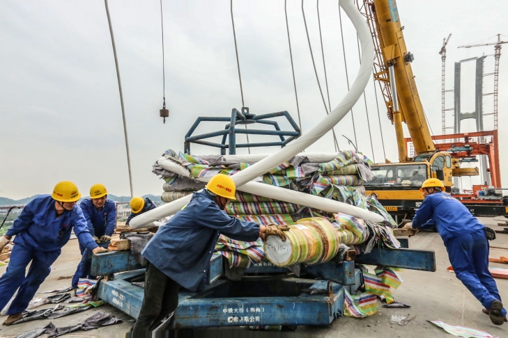 “五一国际劳动节”将至,南沙港铁路跨西江特大桥施工现场正是一片热火朝天的景象。