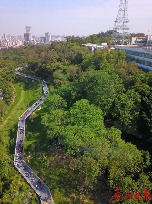被市民称为“空中云道”的“白云山麓湖越秀山连通工程”,其6.2公里的主体工程将于“五一”小长假首日正式开放。这条“云道”串联起广州城区内八大城市公园,市民可以步行从中山纪念堂、越秀公园、花果山到达麓湖,将来可以直达广州花园、白云山。