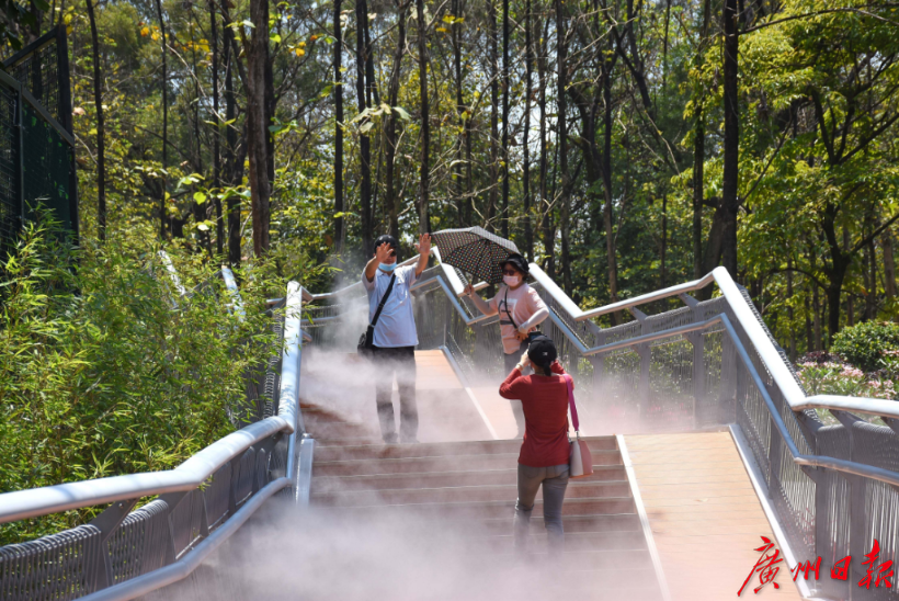 “云道”基本全线覆盖喷雾系统,每110米就有一段,即便阳光“热情似火”,步道也能通过水雾降温。