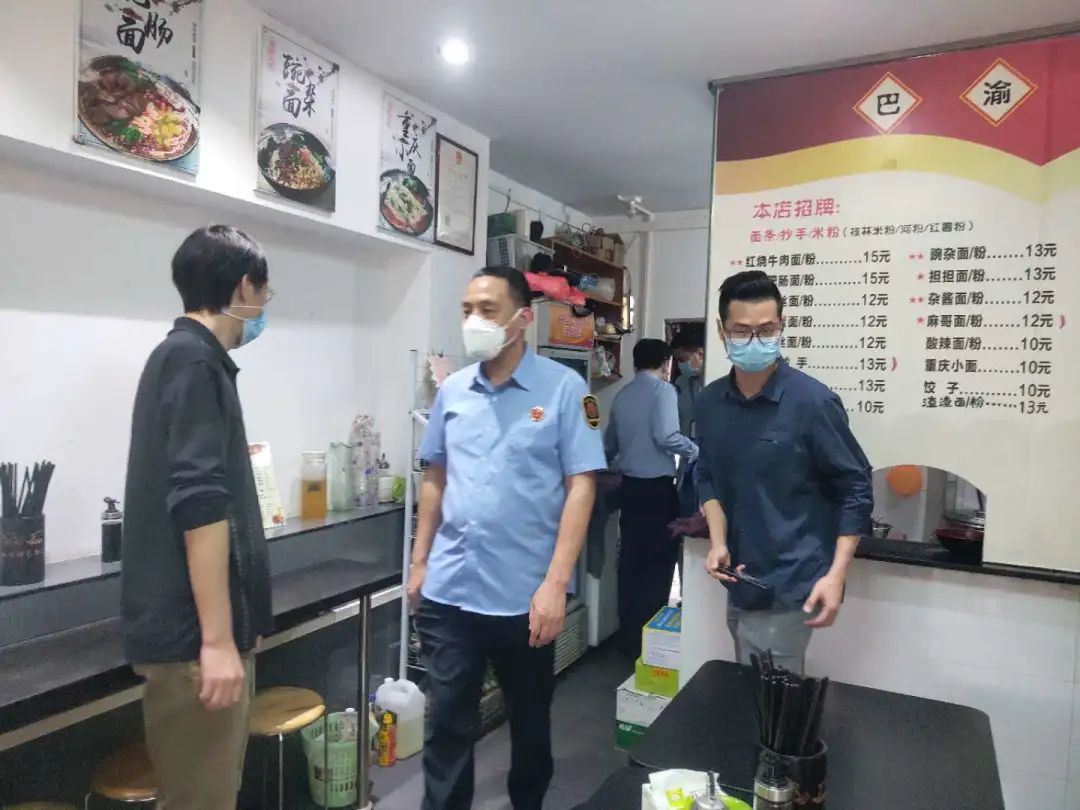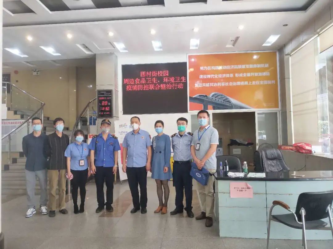 当天下午,西村街开展联合整治行动,对校园周边食品卫生、环境卫生、疫情防控情况进行监督。