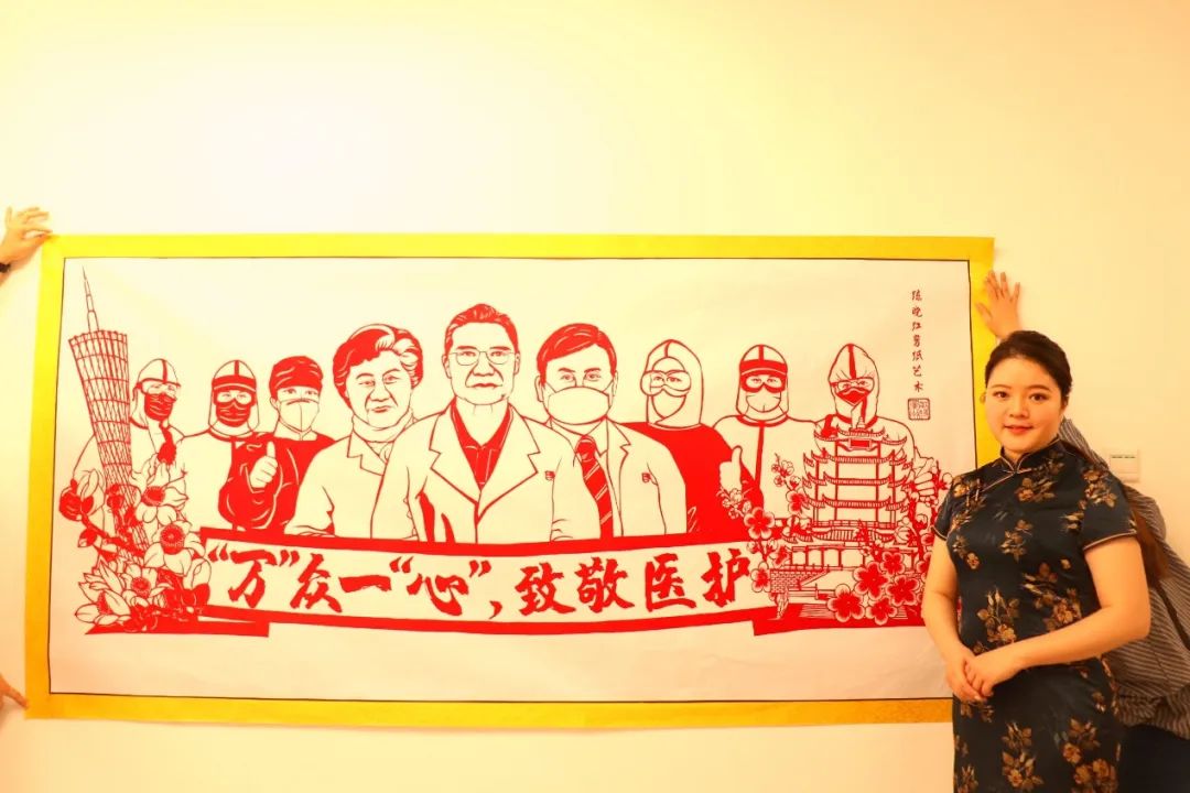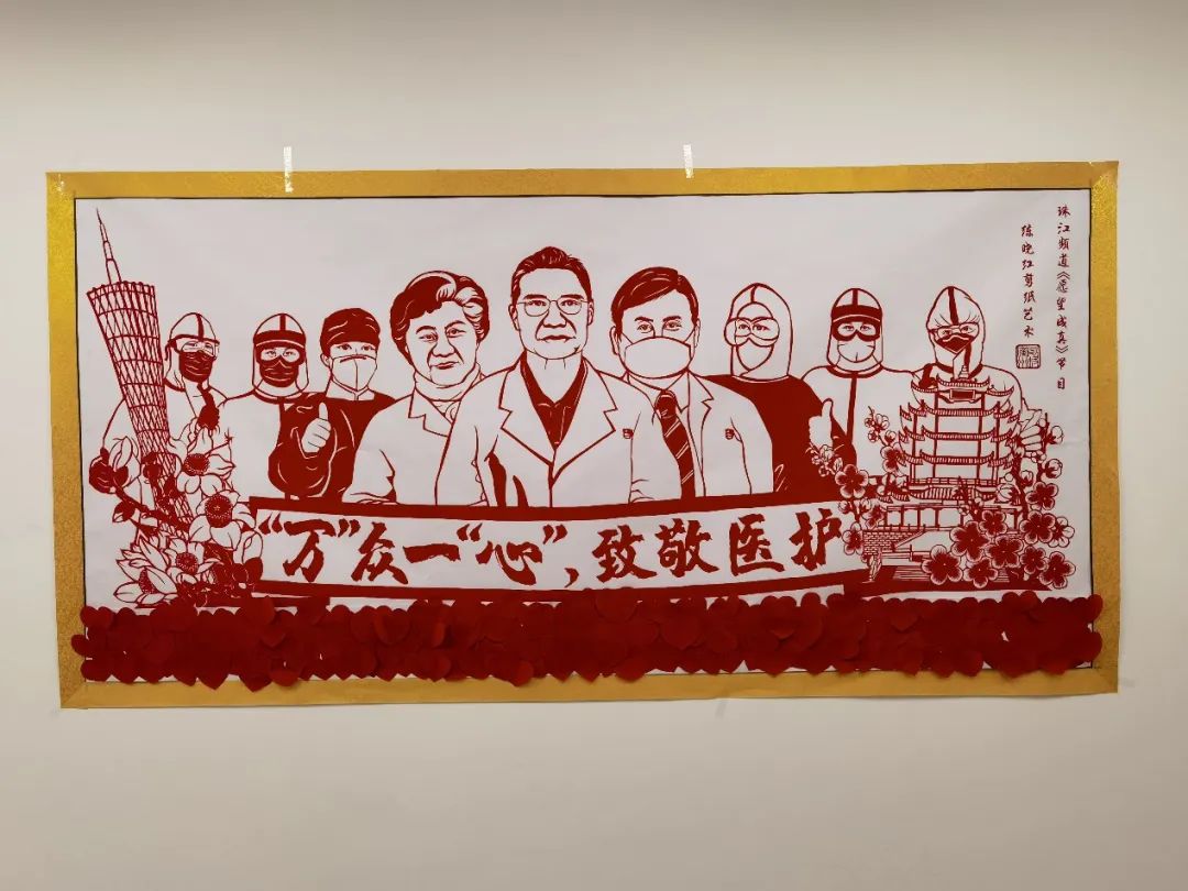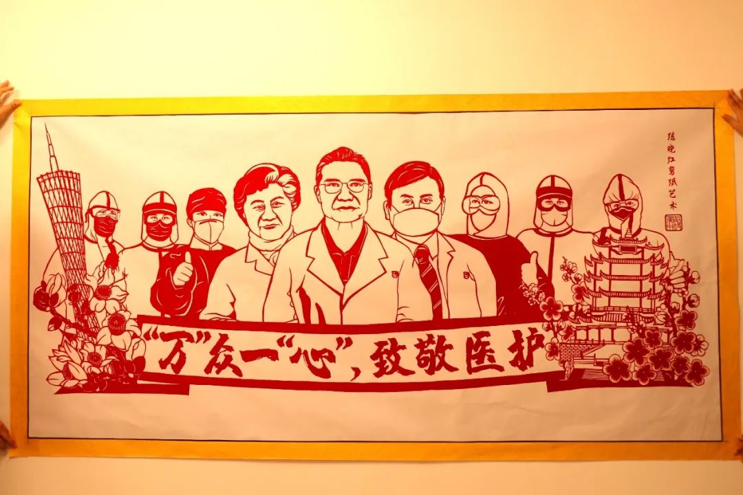 据茶滘街剪纸协会介绍,半个多月前,在一次公益活动中,练晓红得知广东省人民医院一位新冠肺炎康复者许下微心愿,想用一种特别的方式致敬医护人员,感谢他们在一线奋战。练晓红的剪纸工作室接下此微心愿,以剪纸创作的形式设计一幅作品,送给广东省人民医院。