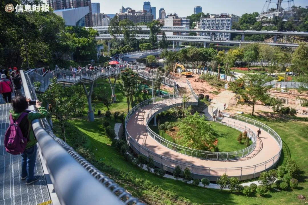 云道试验段(越秀公园至花果山段)目前已开放,不少市民前来步行打卡。信息时报记者 胡瀛斌 摄