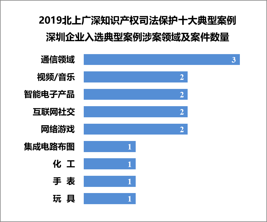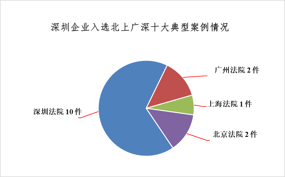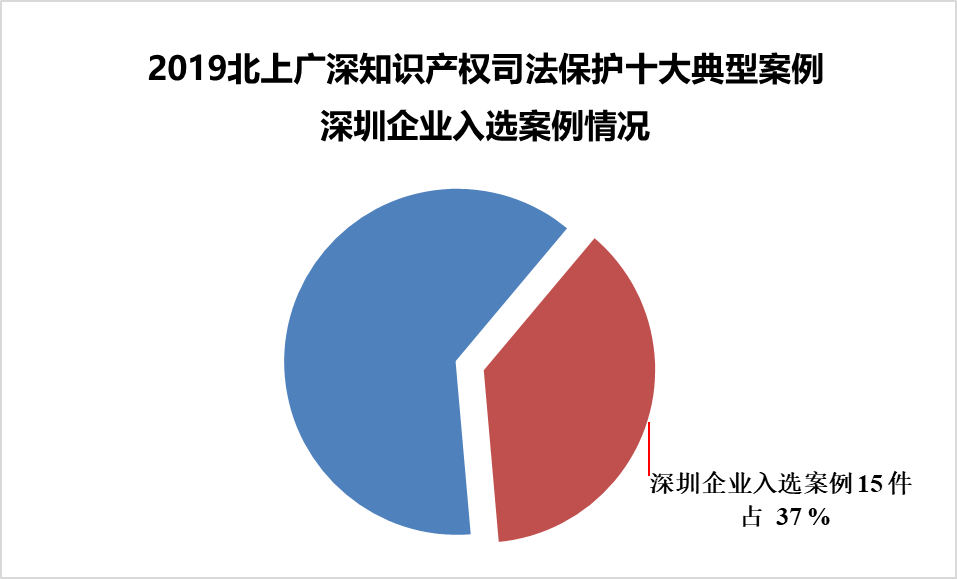 在“4.26知识产权宣传周”期间,北京、上海、广州、深圳四大一线城市陆续发布了2019年度知识产权司法保护十大典型案例。经深圳市知识产权联合会统计分析,北上广深发布的40个典型案例中,深圳企业入选15个,占典型案例总数的 37 % ,是企业入选案例最多的城市。其中,北京法院2件,上海法院1件,广州法院2件,深圳法院10件。腾讯、华为两家企业就有7件案例入选典型案例。