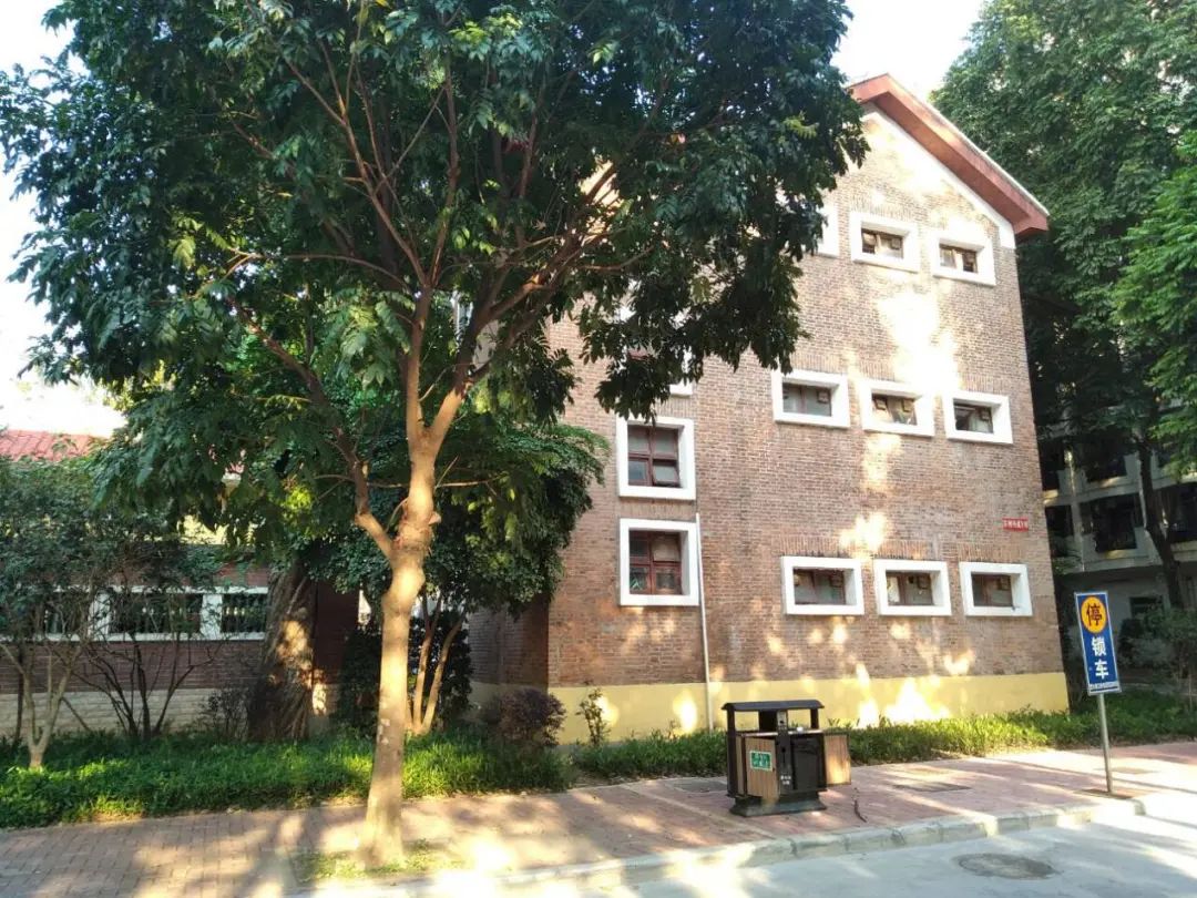 在学校迁址后,苏州苑41栋曾作为学生宿舍使用,现阶段作为教职工宿舍使用,期间进行了多次的维护和修缮。该建筑高3层,红砖外墙,坡屋顶,竖向红砖柱,带有宫廷式建筑气息,内部构件保留较完好,富有时代特色。这是新中国关心华侨教育的重要见证,也是维系广大华侨侨生与祖国情感联系的纽带,具有重要的历史纪念价值!2018年经专家组调查研究,苏州苑41栋被评定为广州市传统风貌建筑并予以挂牌保护。