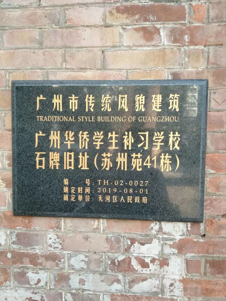 位于暨南大学校内的苏州苑41栋建于1957年,位于天河区黄埔大道西 601 号暨南大学内,原为广州华侨学生补习学校旧址。1965年,补习学校迁至天河区瘦狗岭,并于1993年整建制并入暨南大学。